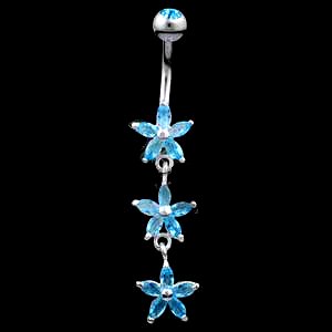1.2mm Gauge 14ct White Gold Blue Topaz Marquise Jewel Attachment - Internally-Threaded