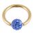 High quality 316L surgical stainless steel ball closure ring (BCR) finished in PVD gold, featuring a sparkly jewelled clip-in ball. The ball features a host of colourful crystal gems, securely held in place by a smooth clear resin finish to ensure that the gems stay sparkly and will not fall out. The ball has two steel dints to provide extra durability. The ring has a gauge of 1.6mm and is offered in a choice of internal diameter sizes between 8mm and 16mm. The ball features two small indentations which enable it to be held in place by way of a tension grip. To remove the ball, pull the two ends of the ring apart and the ball will drop out (ring opening pliers may be required). To replace the ball, pull the two ends of the ring apart, position the two dents on either side of the ball onto the ring ends and then release your hold on the ring. The two ends of the ring will squeeze together to hold the ball in place. This type of ring is also known as a captive bead ring.