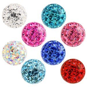 High quality 316L surgical stainless steel labret finished in PVD gold. The gauge of the labret stem is 1.6mm, and it is offered in a choice of lengths between 6mm and 12mm. Our glitter ball features a host of colourful crystal gems, securely held in place by a smooth clear resin finish to ensure that the gems stay sparkly and will not fall out. The ball has a steel threaded insert to provide extra durability. The sparkly ball has a diameter of 3mm and is offered in a choice of colours.