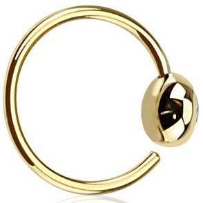 Solid 14 carat gold nose ring. This beautiful nose ring features a 4mm diameter gold ball which securely holds a crystal clear cubic zirconia gem. The gauge of the ring is 0.8mm and the internal diameter is 8mm. Depending on your measurements, this ring may also be suitable for piercings such as eyebrow and lip, along with cartilage piercings such as tragus, helix, conch, rook, daith, etc.
