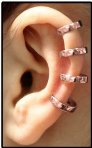 No piercing is required for this surgical stainless steel clip-on ear cuff finished in PVD rose gold. This decorative ear cuff is styled to look like you are wearing four individual hoops and will create a beautiful and unusual effect on your ear. Simply squeeze the ear cuff until it sits comfortably in place.