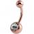 1.6mm gauge steel banana finished in PVD rose gold. This curved PVD rose gold banana features an 8mm diameter jewelled bottom ball which is available with a choice of gem colours. The screw-on top ball is plain rose gold and measures 5mm in diameter. The curved stem is available in a choice of lengths between 6mm and 14mm. Other size/colour combinations may be available - please ask us.