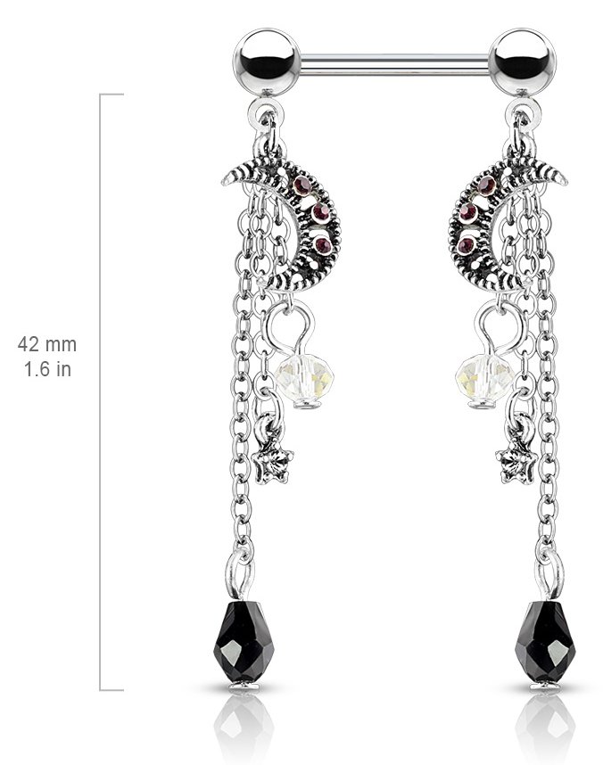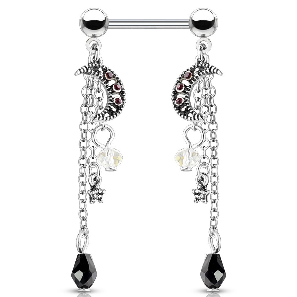 Home For the Body Nipple Piercings Nipple Barbells Steel Moon & Jewelled Tassels Nipple Barbell