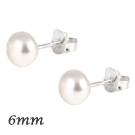Pair of 925 sterling silver earrings featuring real freshwater pearls. The pearls are offered in a choice of 5mm or 6mm diameter. The gauge of the straight sterling silver stem at the back of each earring is 0.75mm and measures 10mm in length. Once fitted, each of the earrings is secured by pushing the steel butterfly-style fixing into place. The price is for a pair and so you will receive two earrings in one pack.