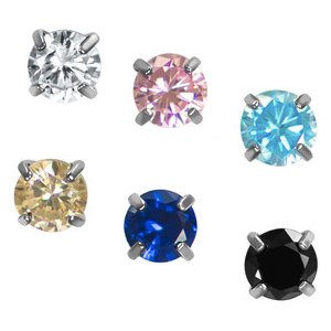 Highly polished titanium claw-set cubic zirconia gem attachment, compatible with all of the jewellery in our Threadless Body Piercing Jewellery Collection. You can read more about threadless jewellery here. This jewelled CZ attachment features a straight pin which you bend very slightly and then push into your chosen stem (not included, available separately). The gem is offered in a choice 2.5mm, 3mm and 4mm diameter, along with a choice of colours. The decoration is finished in shiny mirror polish.